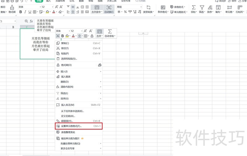 选中目标单元格,右键点击,选择设置单元格格式进行行间距调整。