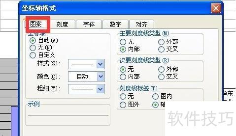 可点击图案选项卡,设置坐标轴样式、刻度线及其标签与显示位置。