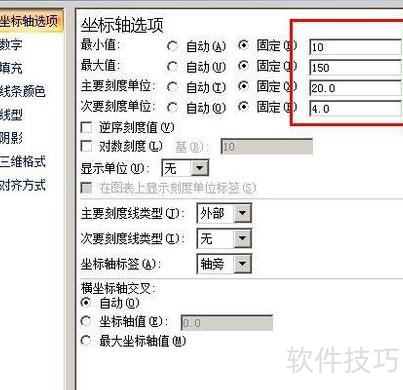 默认情况下坐标轴从0开始,当表格数据普遍较大时,可将起始刻度设为略小于最小值的数。刻度间隔则需根据数据差异灵活调整,建议多次尝试不同设置,以达到最佳可视化效果。