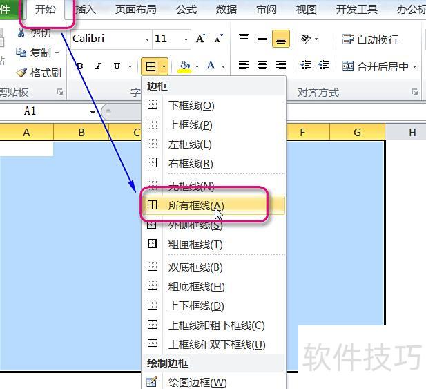在开始菜单中点击边框,选择全部框线样式。