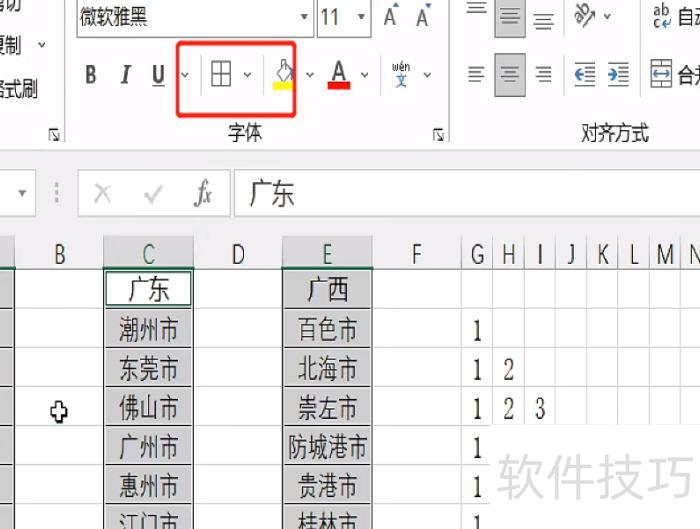 选中目标单元格,按图示设置边框,效果见下图。
