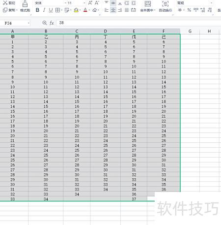 1、选中区域。