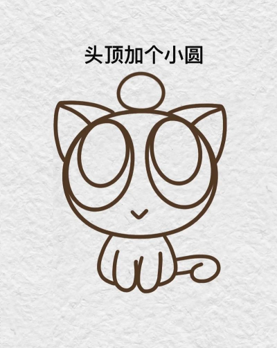 2、勾勒轮廓,抓住特征我们先画小黑的头部,画一个圆形,或者椭圆形,都可以,不用追求完美,接着,画两只尖尖的耳朵,竖在头顶上,然后,画出圆圆的身体,比头稍大一些,四肢可以画得短小些,显得更可爱,尾巴要翘起来,这样更有活力。