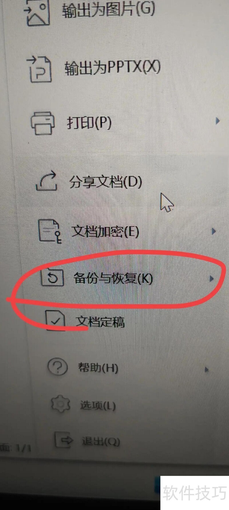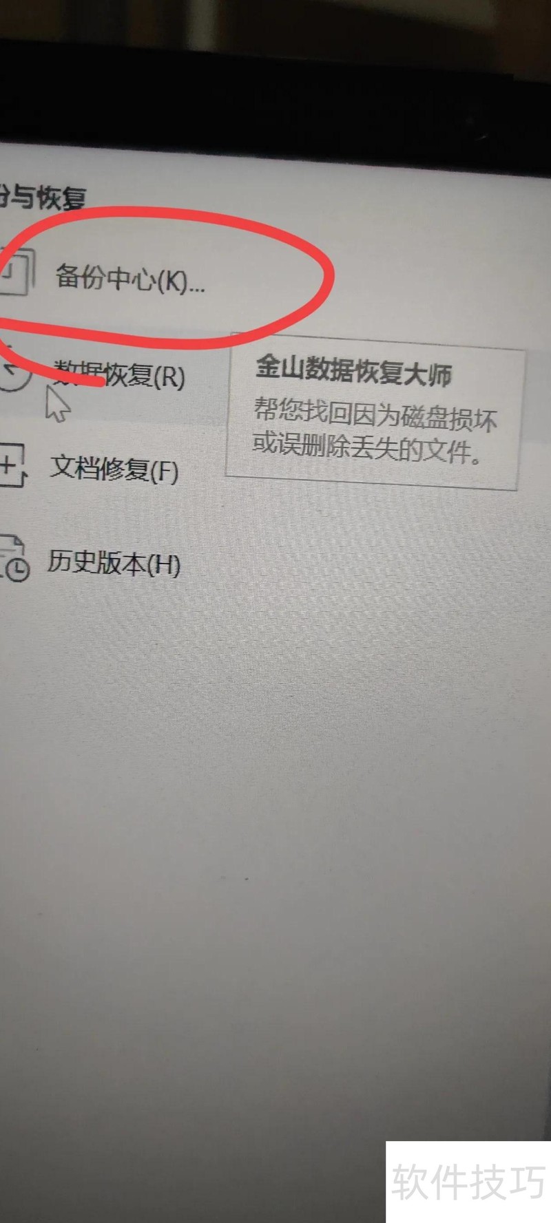 6. 进入备份与恢复,选择备份中心,找到对应时间编辑的文档并打开即可。希望这个方法能帮到有需要的朋友,也提醒大家别像我一样马虎,退出前务必确认清楚,避免不必要的麻烦,操作时多留心,确保文件安全无误。