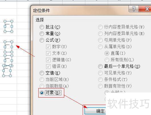 按下F5键打开定位对话框,点击定位条件按钮,在弹出的窗口中选择对象,确认后即可选中工作表中所有图形控件,接着按Delete键,便可批量删除所选对象。