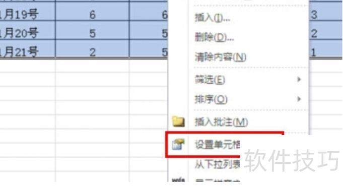 首先打开Excel表格,选中需锁定的单元格区域,右键点击,从弹出菜单中选择设置单元格格式选项,进入相关设置界面,所示。