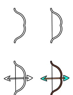 3、添加箭矢与装饰元素光有弓可不够,我们还得画箭,箭杆是笔直的,箭头尖锐,箭尾有羽毛,称为箭羽,画的时候,让箭搭在弓弦上,指向目标方向,还可以给弓身画些花纹,增加真实感。
