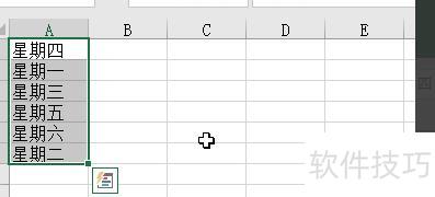打开表格,为便于演示,随意输入一组顺序混乱的日期数据。