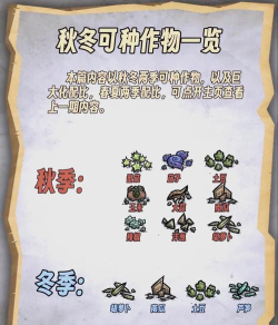 秋天是最佳种植季,气候温和适宜,冬天则太冷,大部分作物无法户外生长,可以考虑建立温室,或者,暂停大规模种植,除了天气,怪物也是大麻烦。