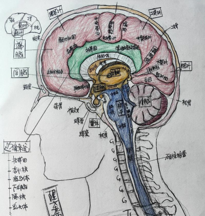 沟回是大脑灵魂,画得好才逼真,所以,要耐心刻画,但别过度纠结。
