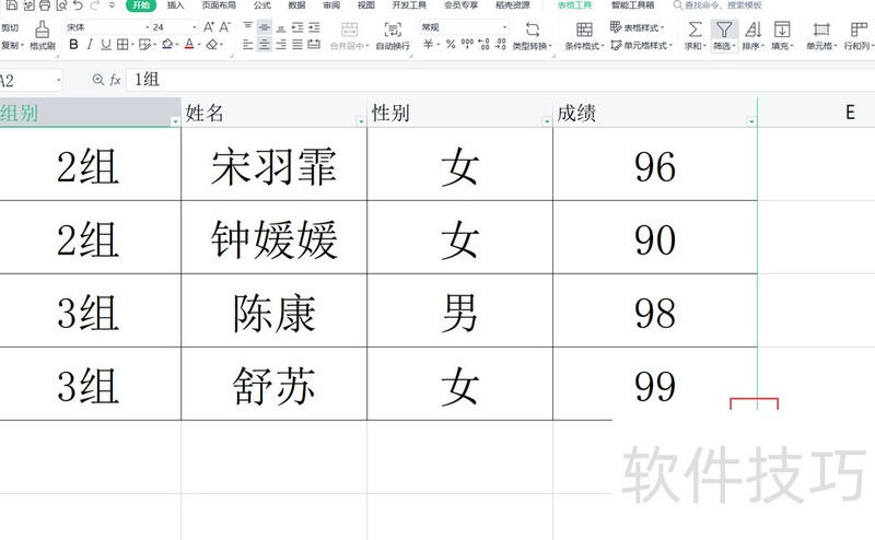 在使用WPS表格时,可能会遇到所示的情况:当选中A2至A5单元格(内容均为1组)时,发现开始选项卡中的合并居中按钮呈灰色,无法点击,导致无法执行合并操作。