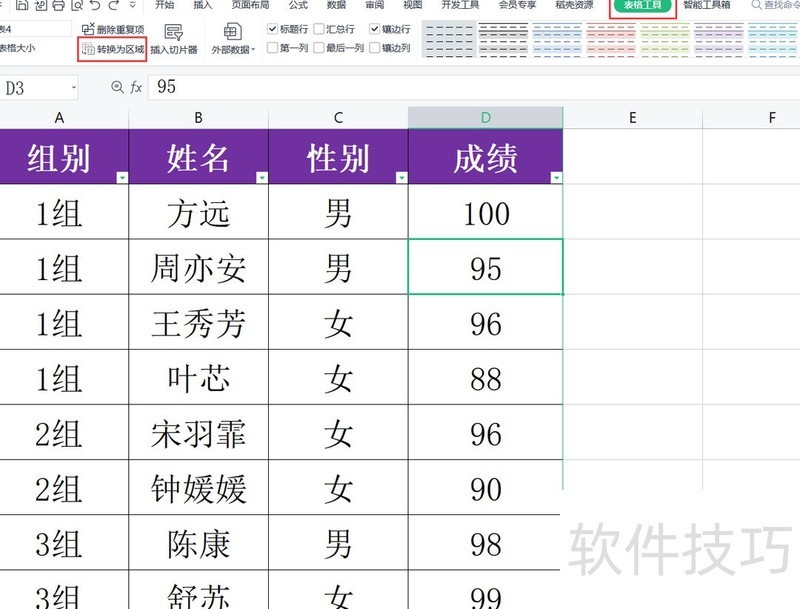 操作步骤如下:首先选中智能表格中的任一单元格,接着在表格工具选项卡中点击转换为区域按钮,随后在弹出的对话框中确认操作,即可将智能表格转换为普通表格。
