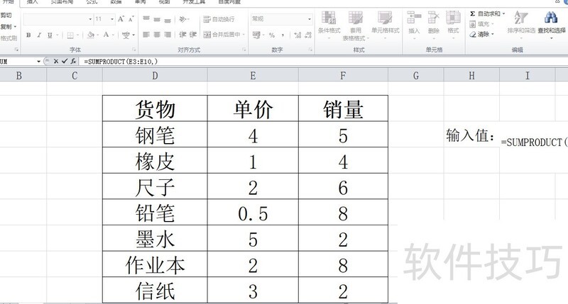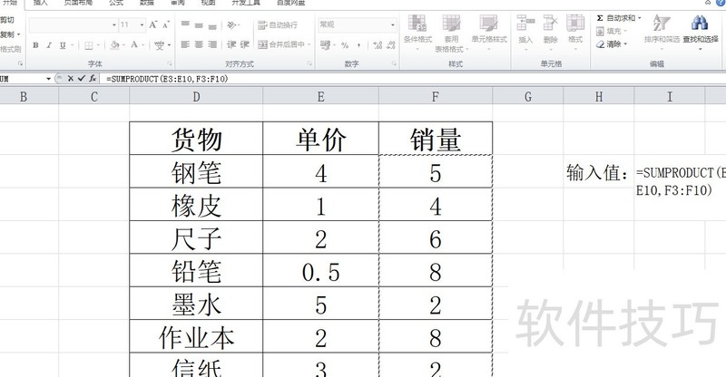 输入函数,第一个参数选单价列,第二个参数选销量列。
