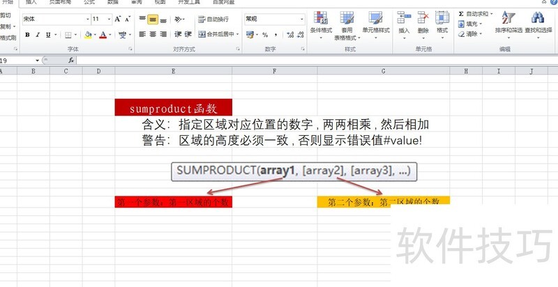 从上图可清晰看出,输入SUMPRODUCT函数时会显示多个参数,只需理解前几个参数的含义,就能正确使用该函数。