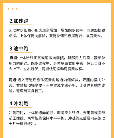 2、优化技术,让每一步都更高效错误的跑姿,会让你事倍功半,甚至受伤,正确的跑姿能节省体力,跑得更轻松,更快,身体要保持挺直,微微前倾,利用重力前进,步幅和步频要平衡,步频太慢,效率低下,步幅过大,容易受伤,建议提高步频,减小步幅,让脚步更轻快,落地时,用前脚掌或全脚掌,避免脚后跟先着地,减少对关节的冲击,摆臂要自然有力,与腿部节奏协调一致。