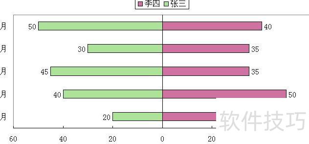 双向条形图能更直观地对比数据,以下通过实例演示其制作方法。
