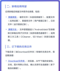 系统运行也会产生大量垃圾,比如应用卸载残留、临时文件等,可以使用手机自带的“手机管家”或“清理加速”功能,一键扫描并清理,同时,别忘了清理“最近删除”相册,这里面的照片视频,依然占用着空间,彻底删除才能释放,还有下载目录,经常堆满无用文件,定期清理很有必要。