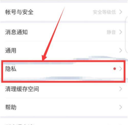 2、进入隐私设置,定位隐身选项
