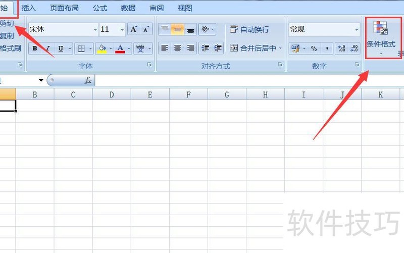 打开Excel工作表,点击开始选项卡中的条件格式功能。