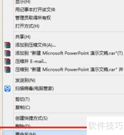 选中文件后右键点击,选择重命名,将文件后缀名由pptx修改为其他格式,如doc或rar即可完成转换。