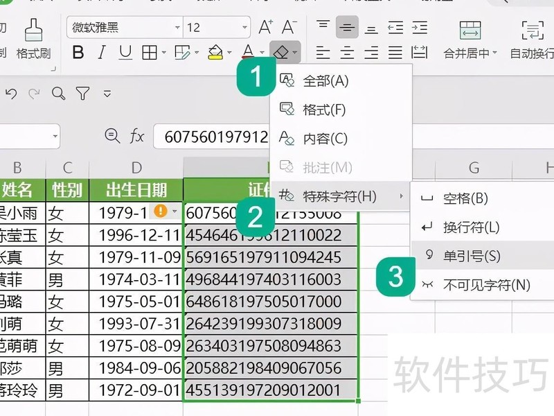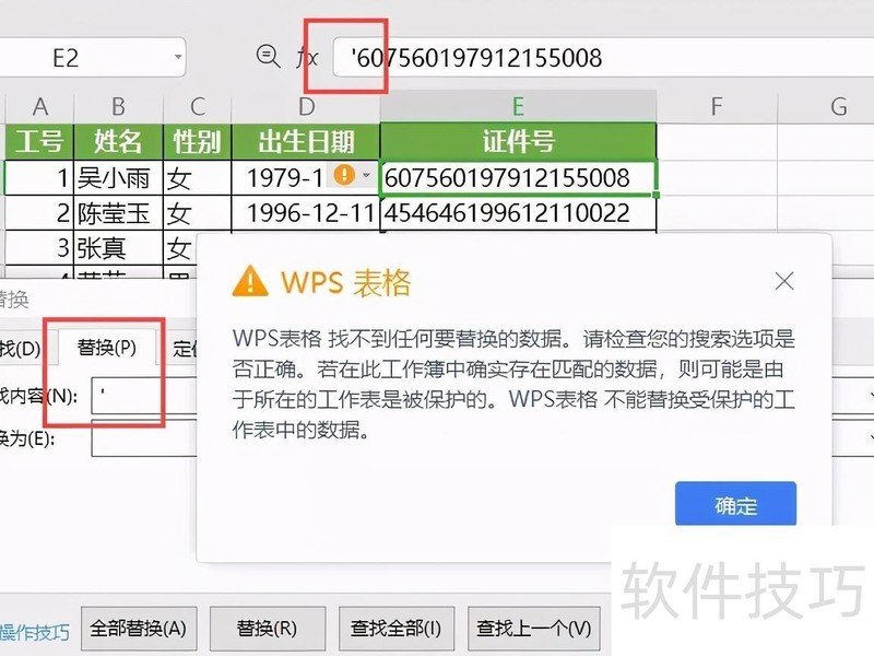 当在单元格中输入超过15位的数字时,需先将单元格格式设为文本,或在输入前添加单引号以确保数字完整显示。但这样操作后,编辑栏中会显现出单引号,影响视觉效果。你可能会想到用查找替换功能将其清除,那接下来不妨实际测试一下这种方法是否可行。