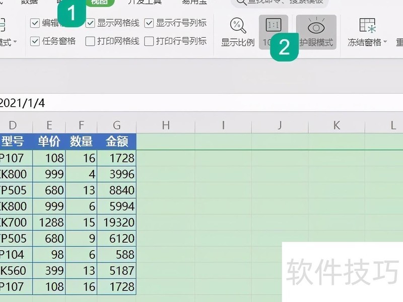 点击视图菜单中的护眼模式,或直接点击状态栏的护眼图标。