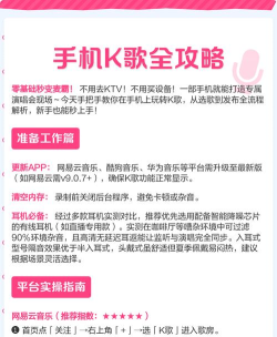 1、挑选合适的K歌软件与设备选软件是关键第一步,看看应用商店吧,热门软件有很多,全民K歌用户多,曲库也非常庞大,唱吧也不错,玩法挺多样的,你可以都试试,选最喜欢的那个,然后,关注一下设备,耳机非常重要,最好是耳麦一体的,能听也能唱,手机自带麦克风,其实也可以用的,但效果差一些,如果有条件,买个外接麦克风,那声音会更棒,像在录音棚一样,记住,环境要安静,这样录出来干净。