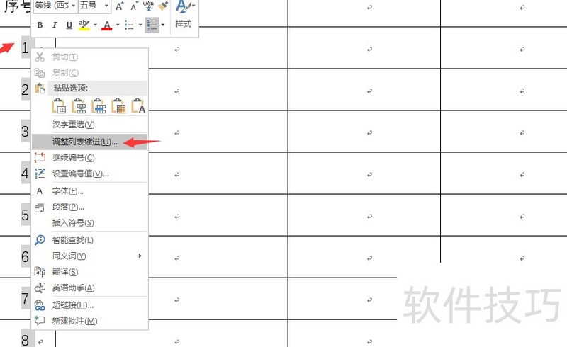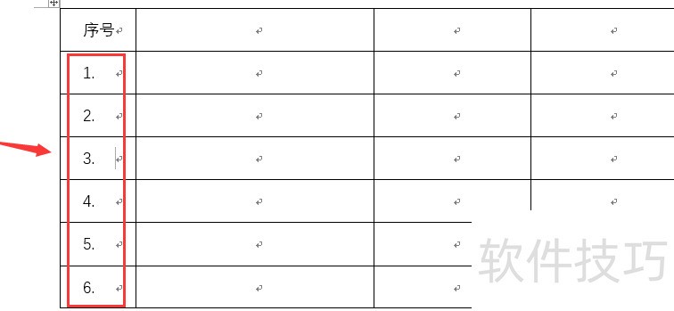 请大家看示例图片,Word表格中的序号需手动输入,若增删行则需重新调整,操作十分不便。