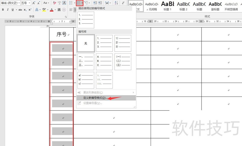 Word也能批量添加并自动更新,只需选中序号列,点击开始选项卡中的编号,选择所需样式即可完成。