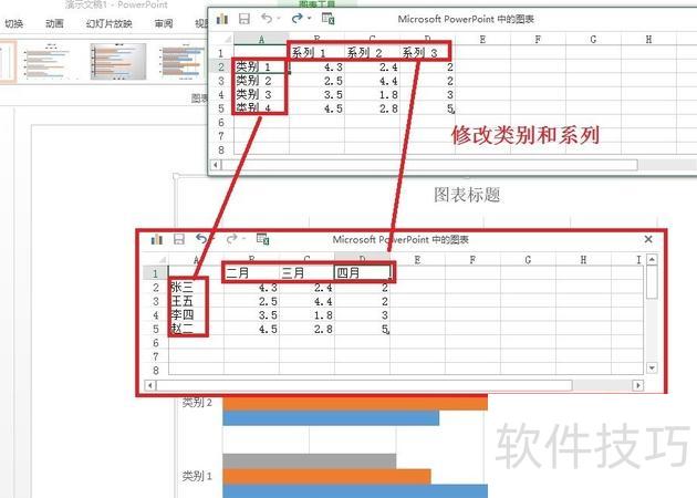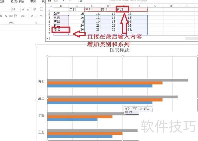 在PPT2013中,只需在原有内容后直接添加类别与系列即可完成增加。