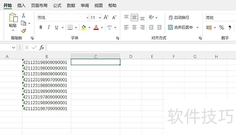 新建空白表格,将个人身份证信息按统一格式输入同一列的单元格中。