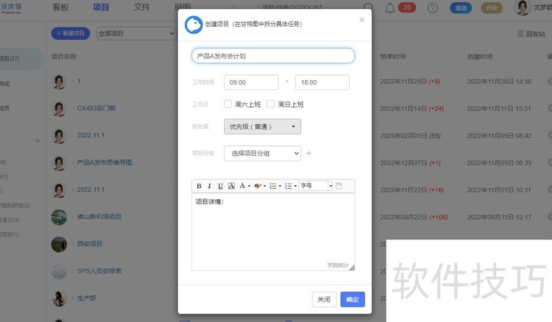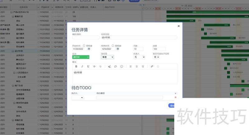 第一步:创建项目并开启甘特图。日常任务按优先级逐一列出;针对复杂项目或任务,先划分成若干主要阶段,再对每个阶段进行细化,逐层分解为具体可执行的子任务,确保条理清晰、便于管理与跟进。