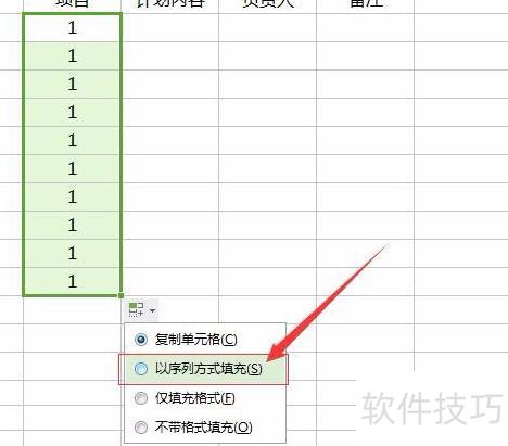 在Excel中,先在序列起始单元格输入初始编号,例如1;将鼠标移至该单元格右下角,待光标变为十字形时,按住左键向下拖动至目标位置;松开后点击单元格右下角出现的自动填充选项按钮,选择序列或以序列方式填充,即可完成连续序号的自动填充。