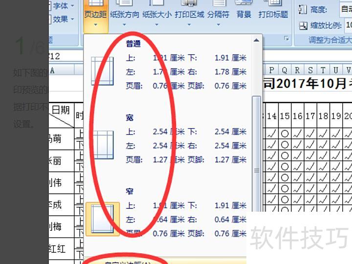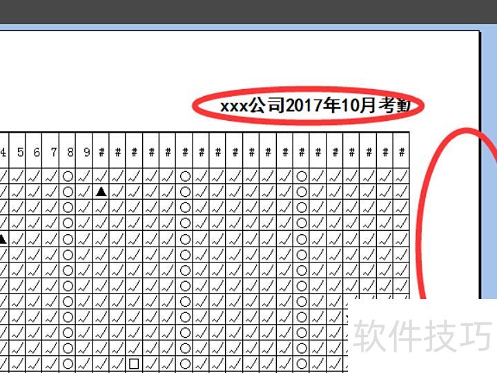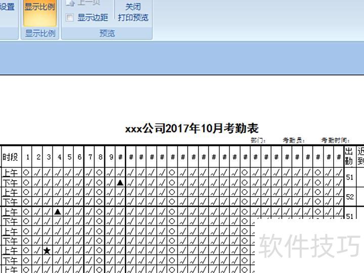 所示,打印考勤表时,预览仅显示部分内容,部分数据无法打印,此时需进行相应设置调整。