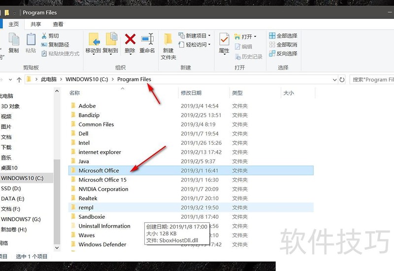 我们点击进入Program Files文件夹,即Microsoft Office的上级目录,便可找到Office程序的安装路径。