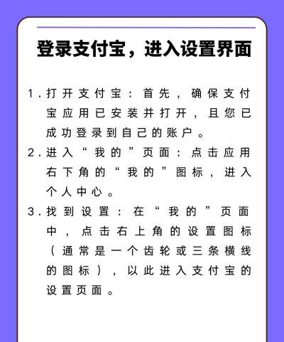 打开你的支付宝APP,然后,点击右下角的“我的”,接着,在页面右上角,你会看到一个小齿轮图标,那就是“设置”按钮,点进去,就对了。