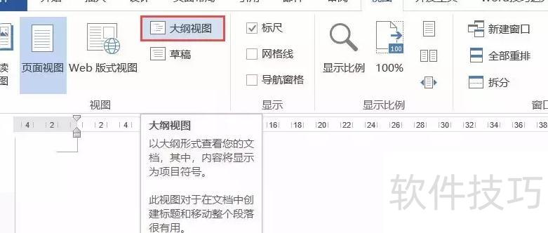 点击视图选项卡中的大纲视图。