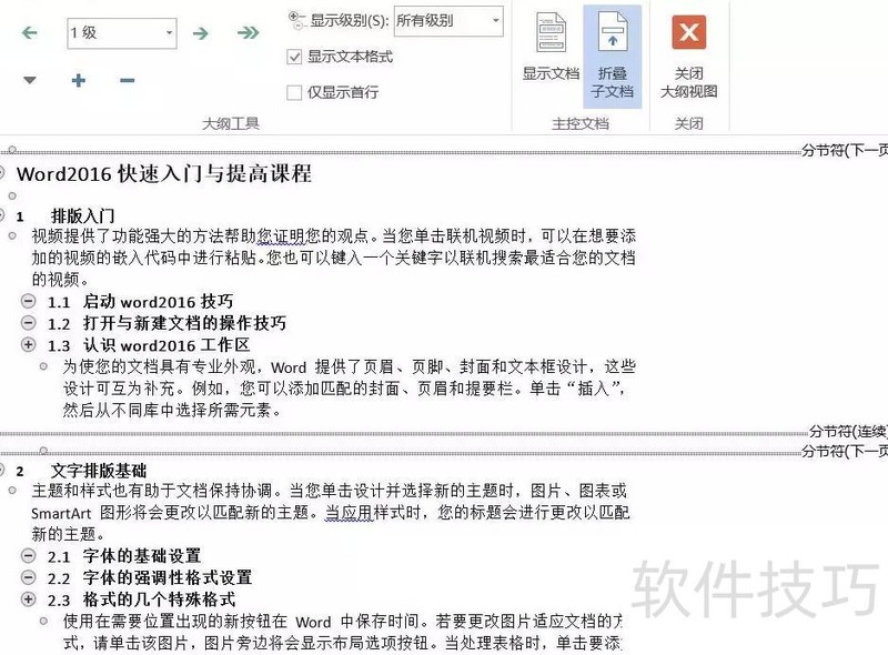 在实际使用Word时,为便于后期维护页码、目录、题注等内容,常将多个文档合并为一个主控文档。通过主控文档可统一管理和编辑各个子文档。打开主控文档后,Word会通过超链接自动加载对应的子文档,虽物理上独立,但显示上如同单一文件,操作直观便捷,极大提升了长文档的组织与修改效率。