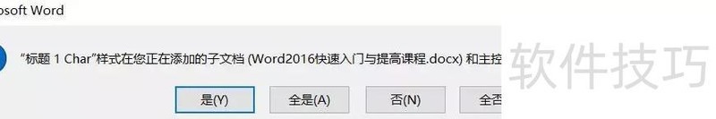 当子文档样式与主文档冲突时,将弹出提示框,按需点击或按钮处理即可。