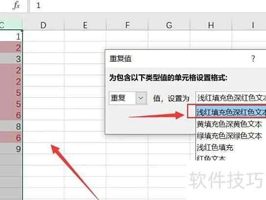 在弹出窗口中选择标记重复项的样式,如颜色填充等。