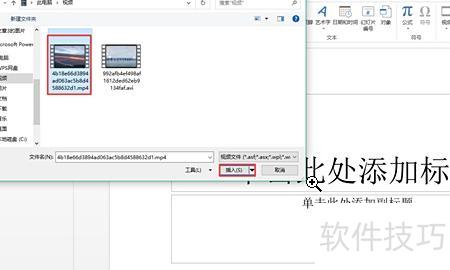 在电脑中选择需嵌入PPT的视频文件,点击选中后,再点击按钮完成操作。