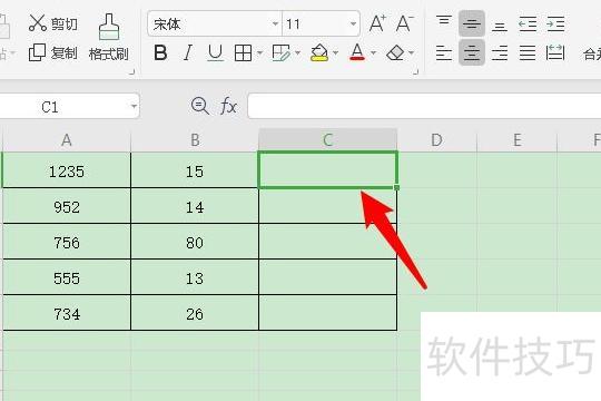 打开Excel表格,以计算C1单元格的除法为例,首先选中C1单元格。