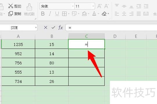 双击单元格,输入等号即可。