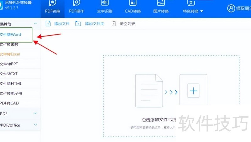第二步:将工具下载到电脑并打开,界面上会显示工具栏。用户可找到文件转Word选项,该功能支持将多种格式的文件转换为Word文档,操作简便,兼容性强。