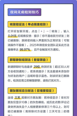想知道微信好友是否删了你,方法有很多,你可以根据情况,选择最合适的一种,试探消息最直接,看朋友圈最常用,转账验证最隐蔽,群聊检测最省事,了解这些方法,就能避免很多不必要的社交尴尬,让你心里更有数。