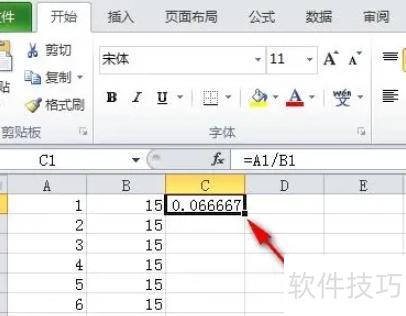 首先打开需计算比例的Excel表格,选中首个目标单元格,在函数栏输入公式,表示将B2单元格的值除以B9单元格的绝对引用值。按下回车键后得出结果,显示为小数形式,便于后续转换为百分比或其他格式处理。