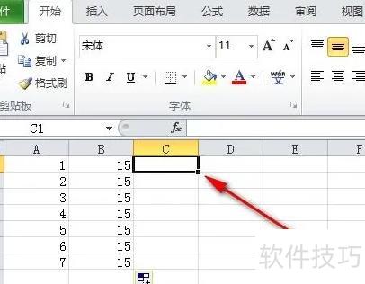 将单元格光标定位至C1位置。