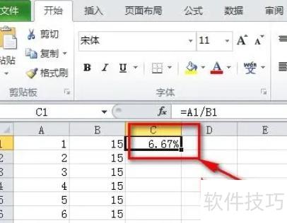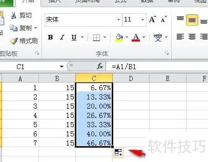 例如,需计算A列与B列数据的百分比,并将结果填入C列。