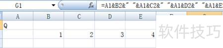 在表格中输入公式:=A1&B2& &A1&C2& &A1&D2& &A1&E2 即可完成操作。