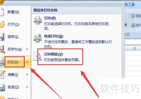 点击左上角OFFICE图标,从下拉菜单中选择打印下的打印预览选项。